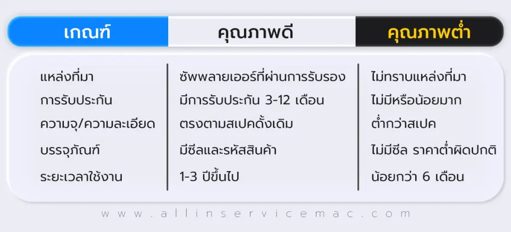 คู่มือการเลือกอะไหล่คุณภาพสำหรับ iPhone และ MacBook | All in Service Mac